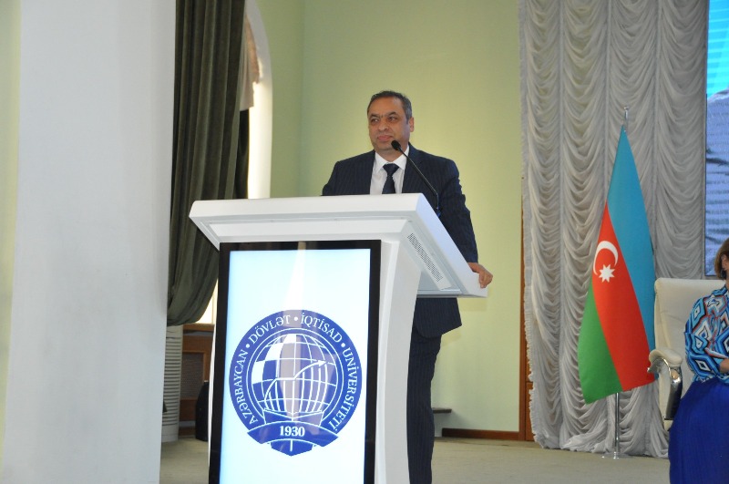 Yubiley münasibətilə professor Məzahir Fərzəliyevə UNEC rəhbərliyi və kollektiv adından xatirə hədiyyələri təqdim olunub.