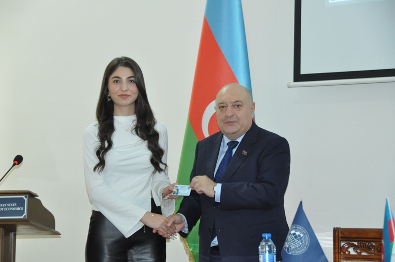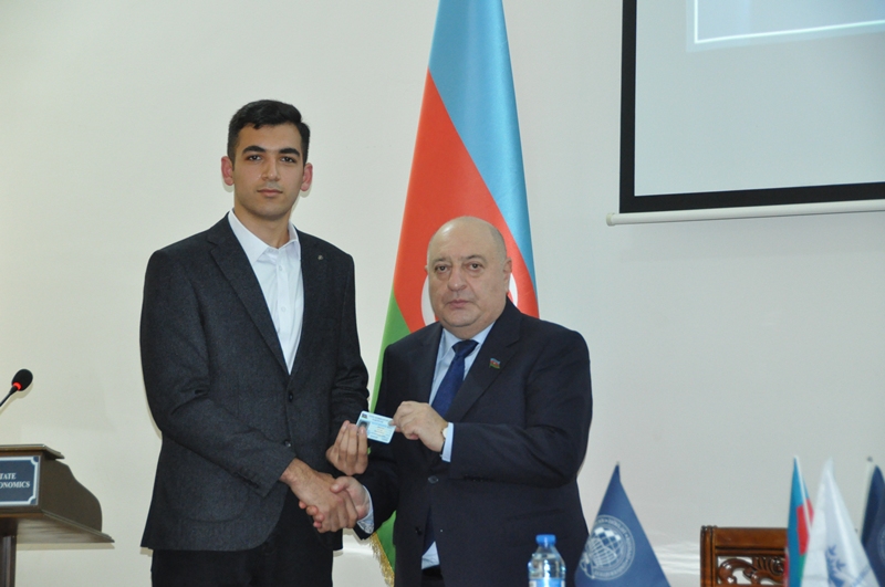 At the conclusion of the event, membership certificates of the New Azerbaijan Party were presented to UNEC students who had recently been admitted to party membership.
