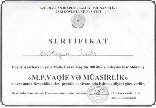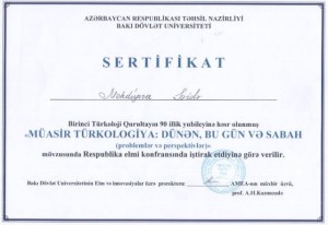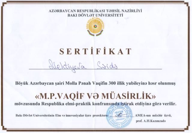 20-dən çox məqalə, 4 Beynəlxalq konfransda məruzələri, 12 sertifikatı və aşağıdakı tədris materiallarının müəlliflərindən biridir.